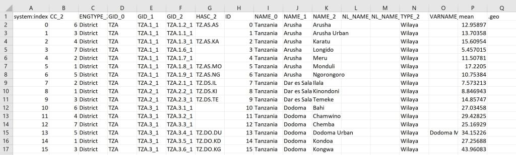 As before, my shapefile consists of the administrative borders of Tanzania. I got this shapefile from the GADM database (version 3.6).