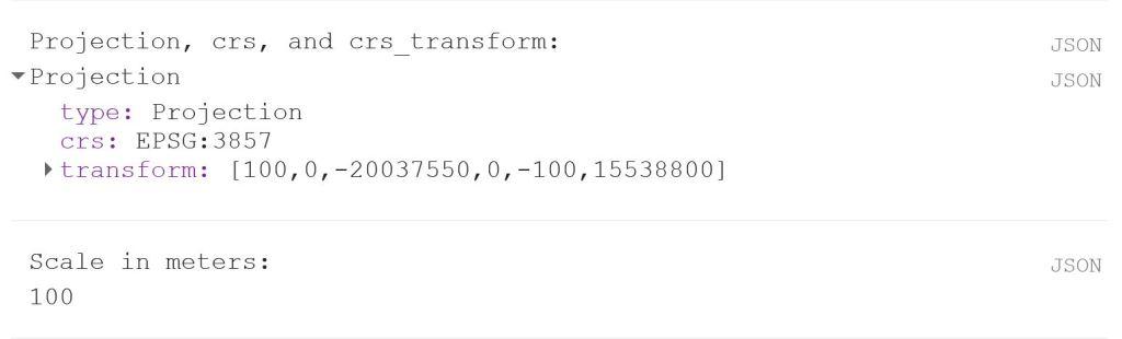Now we can use the reducer reduceRegions. Again, remember that the scale should reflect the spatial resolution of the data. In the image above, we can see that the scale is 100 m.